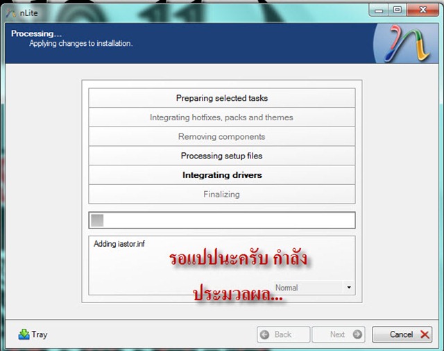 เข้าสู่ขั้นตอนให้คุณ Copy ไฟล์ทุกอย่างในแผ่น Windows ลงในเครื่องของคุณ จากนั้นให้คุณทำการตั้งติดโปรแกรม nLite