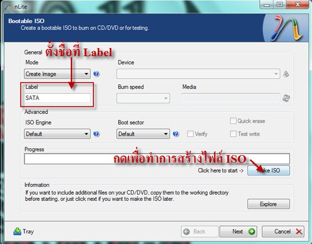 ตั้งชื่อในช่อง Label และกดที่ Make ISO (ตามรูป)