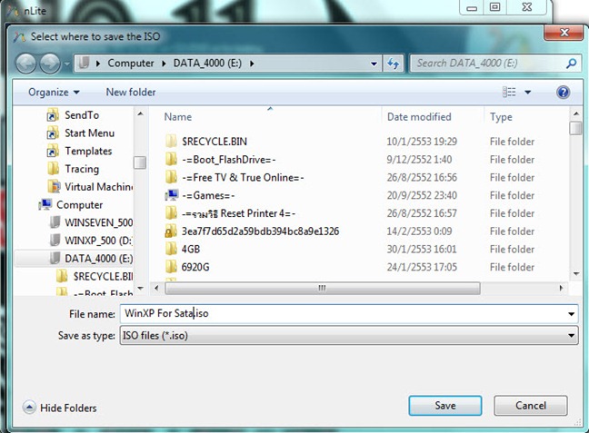 การรวบรวม Driver ลงในโฟรเดอร์ที่คุณ Copy ไว้ตอนแรกเป็นที่เรียบร้อย ขั้นตอนต่อไปเป็นการสร้างไฟล์ ISO เพื่อเก็บไว้เขียนลงแผ่น CD ได้ภายหลัง